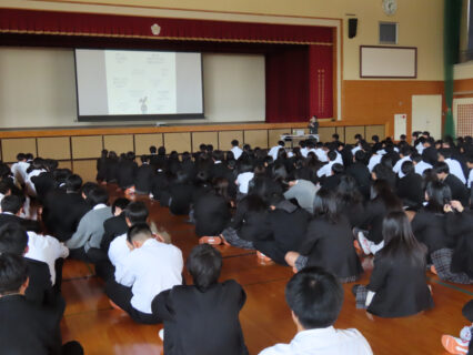 10月29日(水)に、津山中央病院から講師をお招きし、1年生を対象にがん教育講演会を行いました。