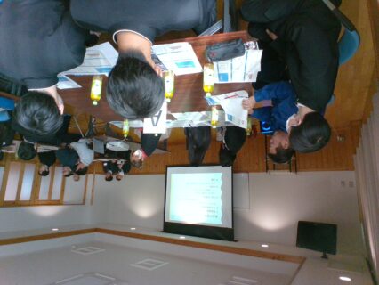 2年生の生徒達は、メタルクラスターの説明を受け、自己紹介のあとからグループワークを行いました。「企業とはどんなところ?」のお題で企業の方よりお話をしていただいたり、「田舎の良いところ悪いところ」、「都会の良いところ悪いところ」のお題では、生徒達が積極的な意見を出し合い、コミュニケーションをとりながら活発なディスカッションをし、企業の方からコメントやアドバイスをいただくことができました。普段の学校での授業や家庭での会話のなかでもなかなか取り上げることのない内容について触れることができました。また津山・美作地域の企業についても知る良い機会となりました。.