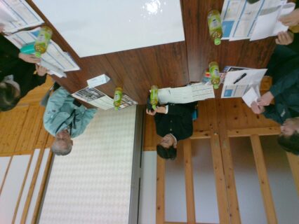 つやま産業支援センター、㈱アイダメカシステム、㈱エアフォルク、㈱岸本鐵工所、㈱トーカロィMTG、中国職業能力開発大学校より11名の方が参加してくださりました。企業の代表取締役や部長、総務部、学務課長、統括マネージャーなど役職を担われている方々と班ごとに分かれて交流を実施しました。